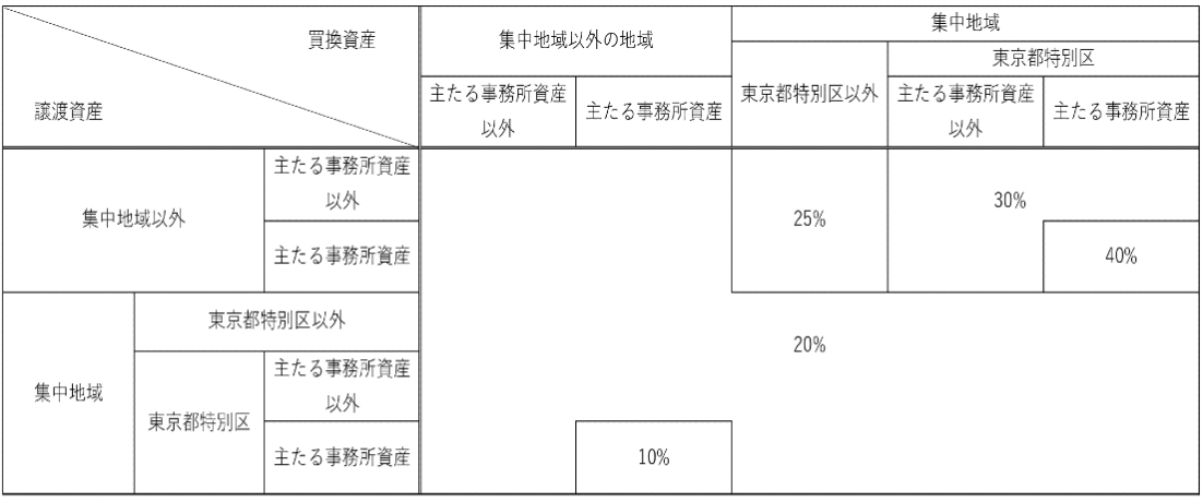 譲渡資産が防衛施設周辺の生活環境の整備等に関する法律に規定する第二種区域内にあり、かつ、買換資産が航空機騒音障害区域以外の地域内にあるときの課税割合は、30%になります。